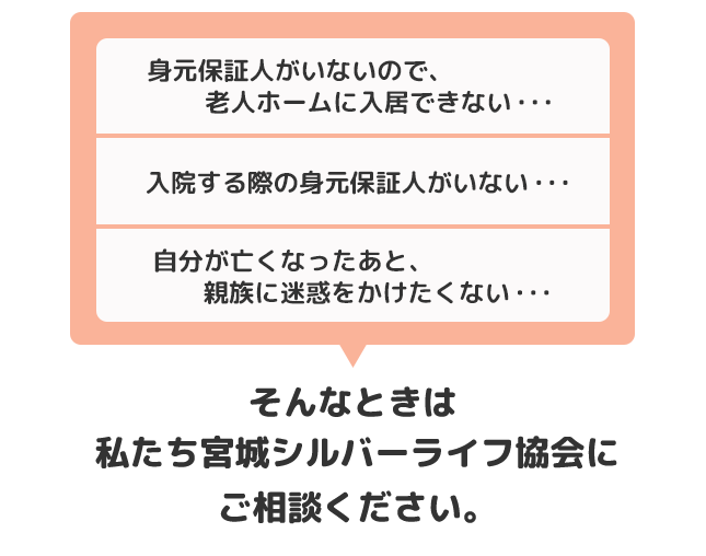 有料老人ホーム等の身元保証人が必要な方、自宅生活の万が一に備えたい方向けのプランです。